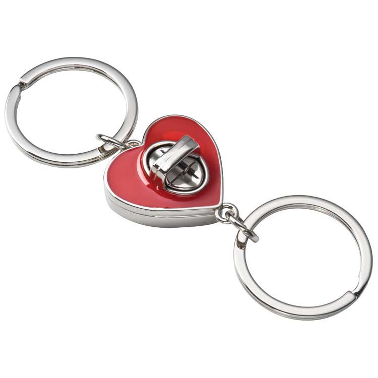 Metalowy brelok w kształcie serca, zachwyca nie tylko wyglądem, lecz również funkcjonalnością. Wystarczy odpowiednio go przekręcić, by podzielić brelok na dwa. Z łatwością zarządzaj swoimi kluczami w dowolny sposób.