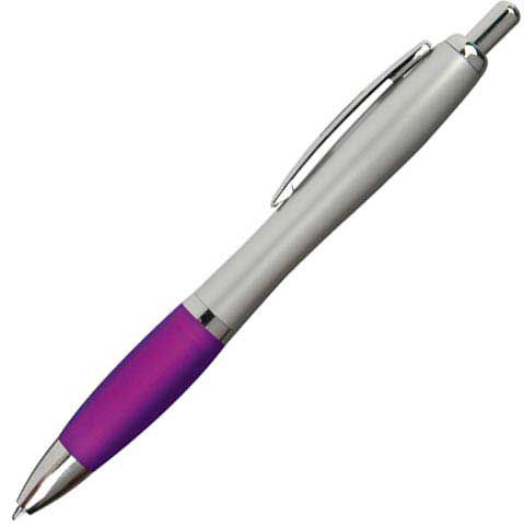 Popularny, plastikowy długopis z satynowym połyskiem, wyposażony w metalowy klip, gumkę ułatwiającą pisanie oraz duży, niebieski wkład. Nadruk reklamowy, na Państwa życzenie, umieścimy na korpusie, z prawej strony klipu.