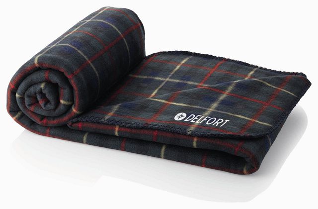 Wygodny, miękki i ciepły koc w tradycyjną kratkę z pokrowcem, który nadaje się do druku.