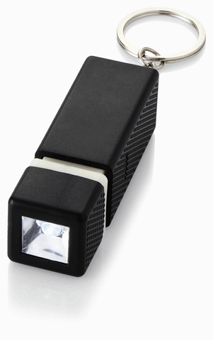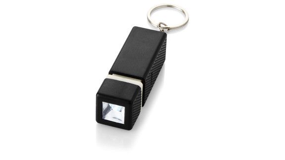 Prostokątna latarka z kółkiem do kluczy. Rozsuń części od siebie by włączyć światło LED.