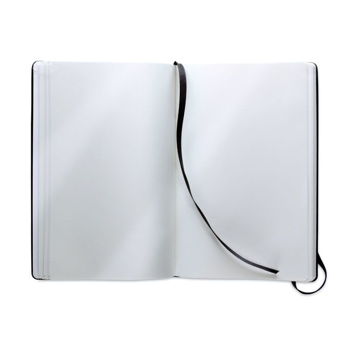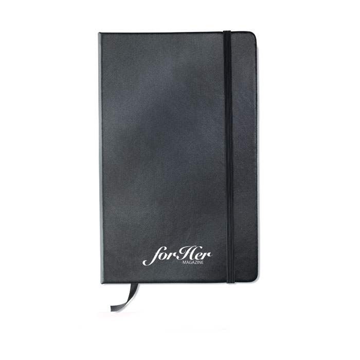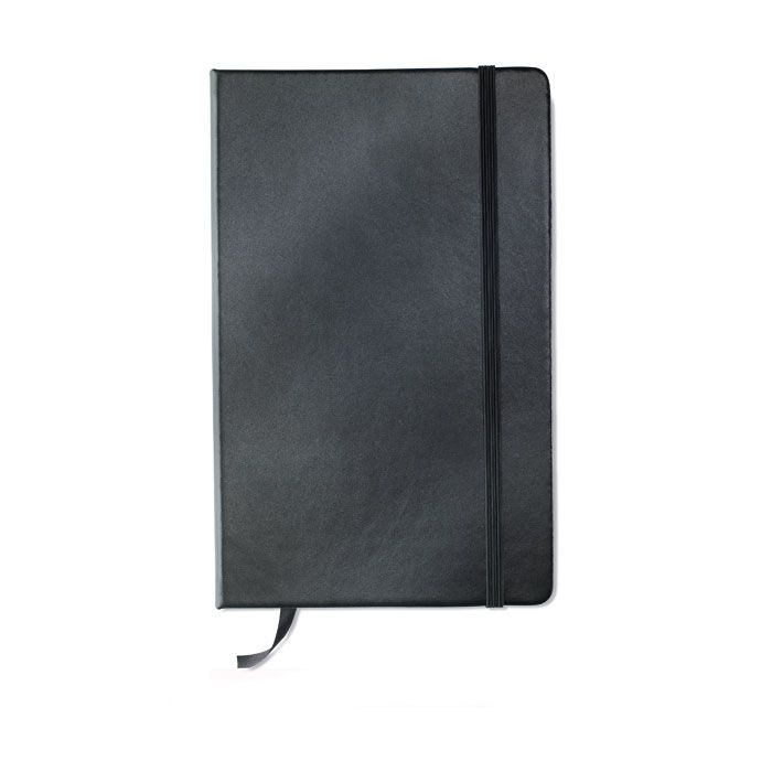 Notes A5 z miękką okładką z PU. Zamykany elastyczną opaską. 96 czystych kartek.
