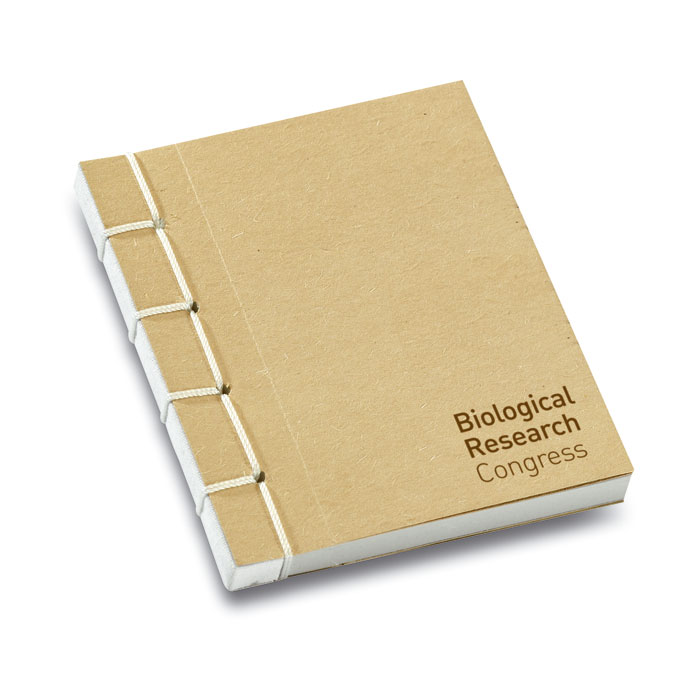 Kieszonkowy notes z surowców wtórnych, bindowany naturalną bawełną. 100 kartek papieru z recyklingu.