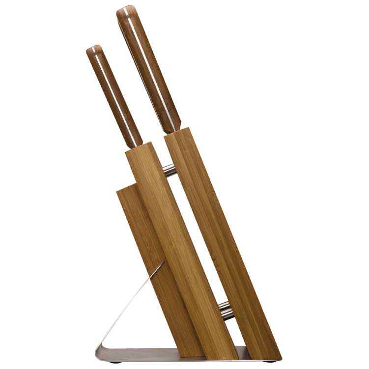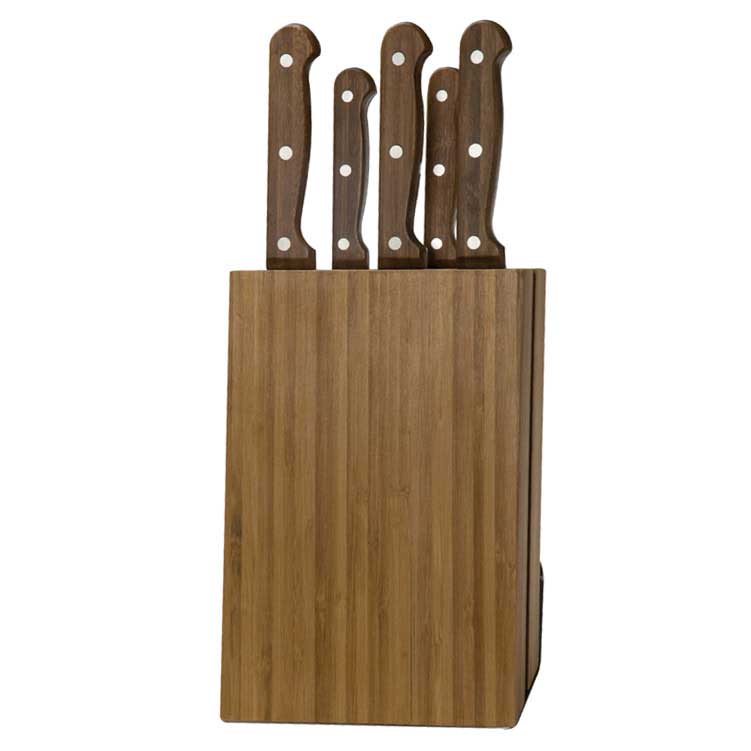 Zestaw 5 noży z bambusowymi uchwytami w bambusowym stojaku