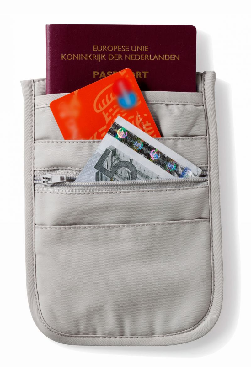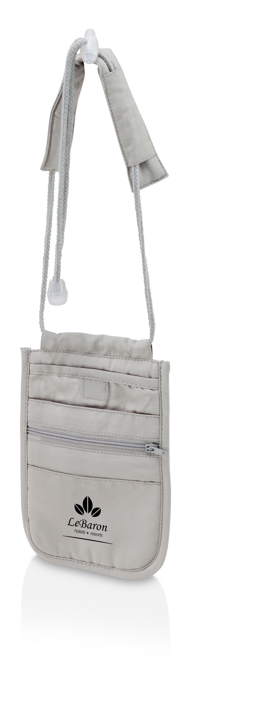 Dwie kieszenie zapinane na rzep, jedna kieszeń otwarta i jedna kieszeń zapinana na zamek błyskawiczny. Regulowany pasek na szyję ze sprężynowym klipsem. Wy?ciełana tkanina na sznurku przy szyi.