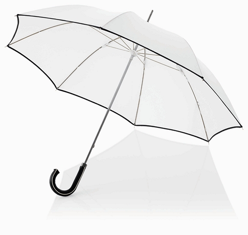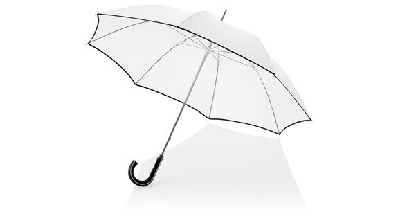 Parasol Balmain w klasycznym stylu z kontrastowym brzegiem oraz rączką wykończoną imitacją skóry.