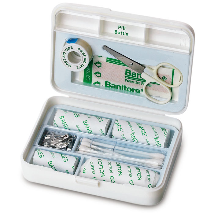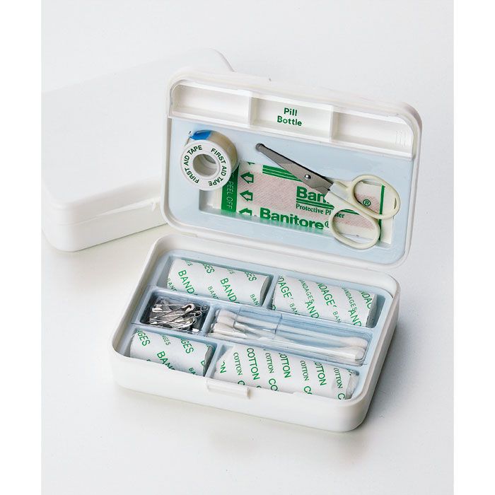 Plastikowa apteczka. 9 elementów jednorazowego użytku.