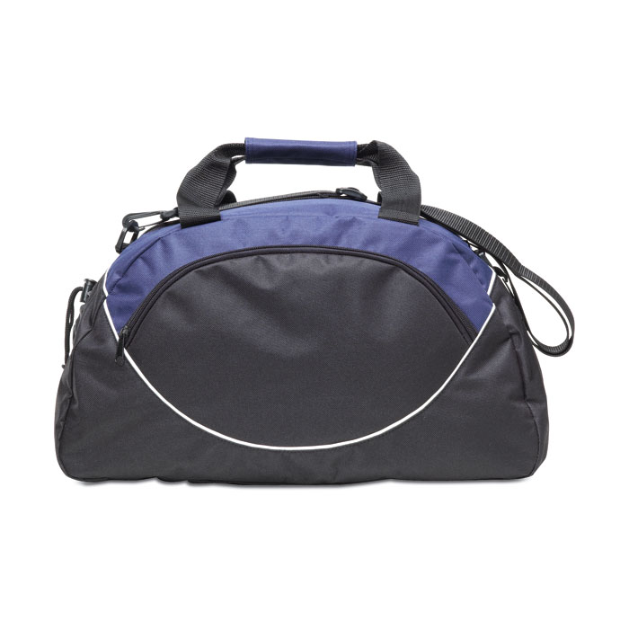 Wygodna ?rednia torba sportowa wykonana z polyestru 600D. Jedna duża przegroda i kieszeń z przodu zamykana na suwak. Z boku kieszeń na butelkę. Podstawa z PE.