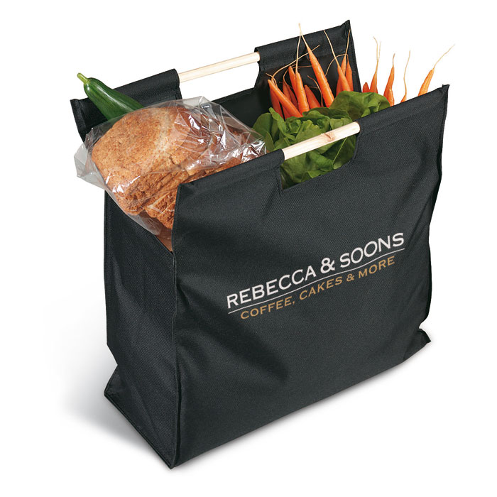 Torba na zakupy z drewnianymi rączkami. Polyester 600D.