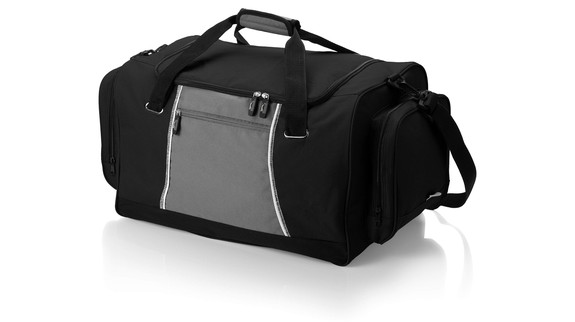 Duża torba sportowa z przednią kieszenią i 2 kieszeniami bocznymi zapinanymi na zamek błyskawiczny.