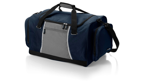 Duża torba sportowa z przednią kieszenią i 2 kieszeniami bocznymi zapinanymi na zamek błyskawiczny.
