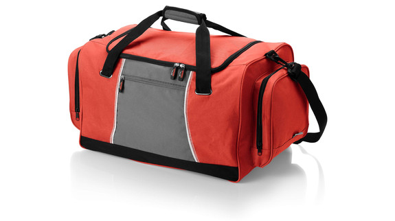 Duża torba sportowa z przednią kieszenią i 2 kieszeniami bocznymi zapinanymi na zamek błyskawiczny.