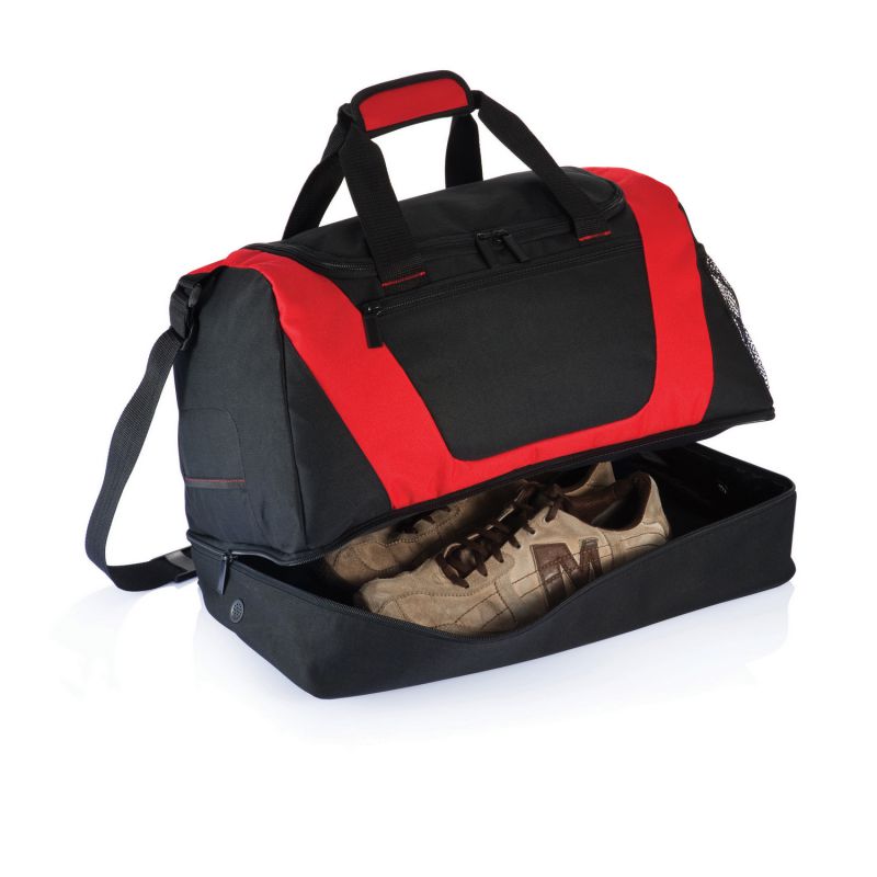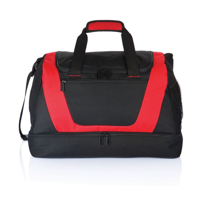600D, podstawa czarne PVC, 1 przegroda główna na górze, 1 duża przegroda, 1 kieszeń przednia, przyczepiany pokrowiec z plastikowym haczykiem wewnątrz, dwie kieszenie siateczkowe po prawej stronie, uchwyt po stronie lewej. Wzór zastrzeżony?