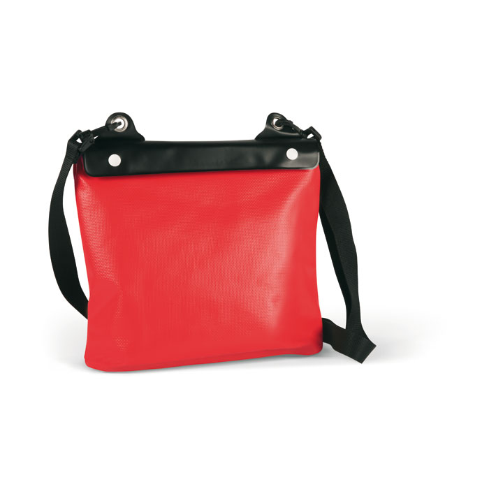Wodoodporna torba reporterska z PVC. Górna część może być 3 razy złożona, aby ochronić zawartość przed wodą. Zamykana na podwójny rzep i 2 zatrzaski. Odłączany pasek na ramię z ta?my parcianej.