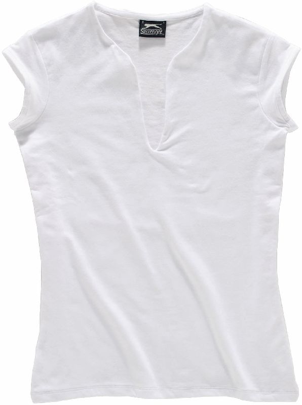 Dopasowany krój. Szwy boczne. Logo Slazenger na ramieniu. Panel frontowy dwuwarstwowy. Modny dekolt. Taśma w kołnierzyku i wykończenie rękawków z tego samego materiału co t-shirt.